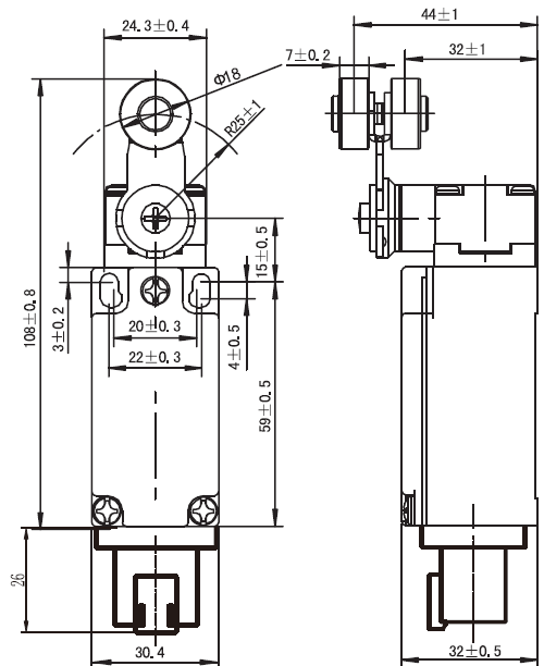 规格: 操作速度: 0.05mm-2m/sec 操作频率: 机械:120ops/min 电气: 30ops/min 绝缘电阻: >100MΩ @ 500V DC 接点电阻: <25mΩ 额定封闭发热电流: 10A/600V AC (EN60947-5-1) 电气等级: UL/cUL Listed(E216958) for AC15 A600/ DC13 Q300 耐压值: 同级端子间1000VAC 50/60Hz 1分钟 端子对地或对无载金属间2500VAC 50/60Hz 1分钟 寿命: 机械 10,000,000次, 电气500,000次 环境温度: -25 to +80°C (-13 to 176oF) 湿度: <95%RH 防护等级: IP67 |