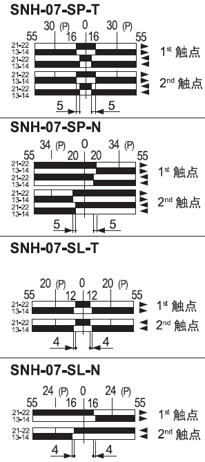 规格: 环境空气湿度:工作-25~70℃,储存:-40~70℃ 耐振动:9gn(10-500hz)符合IEC68-2-6 耐冲击性:68gn符合IEC68-2-27 防触电保护:I类符合IEC536 和NFC20-030 防护等级:IP54 机械寿命:200万次 最小动作力: 开关触发:0.45N.m(SNH-07/17/04),0.60N.m(SNH-27), 1N.m(SNH-37) 强制开离工作:0.75N.m(SNH-07/17/04),0.70 N.m (SNH-27),1N.m(SNH-37) 最大触发速度:1.5m/s 额定工作电压/电流:AC-15:A600 ( Ue=240v,Ie=3A) DC-13:Q300 ( Ue=250V,Ie=0.27A) 符合IEC947-5-1附录A.EN60947-5-1 额定绝缘电压:Ui=600V污染等级3,符合IEC947-1和VDE0110. Ui=600V符合UL508,CSA C22-2 n 14 额定冲击耐受电压:Uimp=6kv 符合IEC947-1,IEC664 强制开离功能:常闭触点带强制开离功能符合IEC947-5-1 section 3,EN60947-5-1 短路保护:10A保险丝 螺纹孔:1/2NPT,M20X1.5,PG13.5 接线方式:螺丝夹紧接线端子,电线规格最小:1*0.5平方毫米,最大2*2.5平方毫米 |