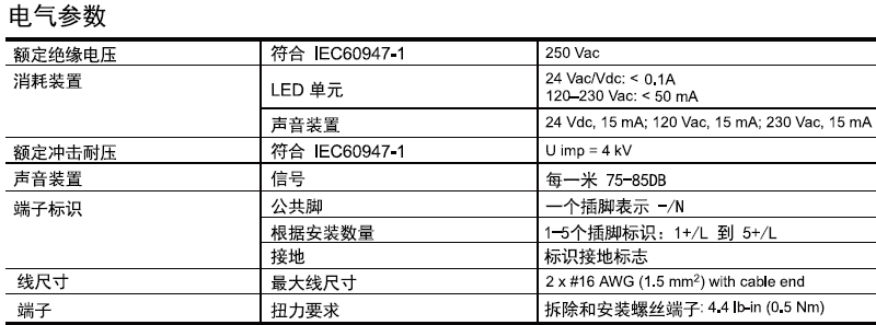 规格: 操作:稳定型带LED     闪烁型带LED     带声音模块 环境温度:      储存  -40 to +158°F(-40 to +70℃)      操作  -30 to +122°F(-25 to +50℃) 点击保护:    管状安装        类型1 符号IEC536     直接安装在底座    类型2 保护等级: To IEC 60529 and NF C 20-010      IP65 To UL 50 and CSA22.3NO.94      Type1,12,13 材料:照明系统              聚碳酸酯    底座和顶盖             ABS+聚碳酸酯    灯和底座外罩            聚酰胺    管道安装             铝合金管    基座                ABS+聚碳酸酯 符合标准:CE       IEC/EN 60947-5-1.UL 508 |