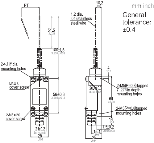 规格: 操作速度: 0.05mm-2m/sec 操作频率: 机械:120ops/min 电气: 30ops/min 绝缘电阻: >100MΩ @ 500V DC 接点电阻: <25mΩ 额定电流/电压: 10A/250VAC (EN60947-5-1) 耐压值: 同级端子间1000VAC 50/60Hz 1分钟 端子对地或对无载金属间2000VAC 50/60Hz 1分钟 寿命: 机械 10,000,000次, 电气500,000次 环境温度: -20 to +70°C (-4 to 158oF) 湿度: <95%RH 防护等级: IP65 |