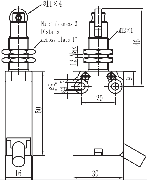 规格: 操作速度: 0.05mm-2m/sec 操作频率: 机械:120ops/min 电气: 30ops/min 绝缘电阻:: >100MΩ @ 500V DC 额定封闭发热电流: 10A (EN60947-5-1) 电气等级: UL/cUL Listed(E216958) for AC15 A300/ DC13 Q300 耐压值: 同级端子间1000VAC 50/60Hz 1分钟 子对地或对无载金属间2500VAC 50/60Hz 1分钟 寿命: 机械 10,000,000次, 电气500,000次 环境温度: -25~80℃(-13~176 oF) 不结冰 电缆: SM31(5芯,0.75平方毫米 7芯,0.5平方毫米 9芯,0.34平方毫米SM31N(4芯,0.5平方毫米) 保护等级: IP67 |