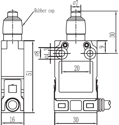 规格: 操作速度: 0.05mm-2m/sec 操作频率: 机械:120ops/min 电气: 30ops/min 绝缘电阻:: >100MΩ @ 500V DC 额定封闭发热电流: 10A (EN60947-5-1) 电气等级: UL/cUL Listed(E216958) for AC15 A300/ DC13 Q300 耐压值: 同级端子间1000VAC 50/60Hz 1分钟 子对地或对无载金属间2500VAC 50/60Hz 1分钟 寿命: 机械 10,000,000次, 电气500,000次 环境温度: -25~80℃(-13~176 oF) 不结冰 电缆: SM31(5芯,0.75平方毫米 7芯,0.5平方毫米 9芯,0.34平方毫米SM31N(4芯,0.5平方毫米) 保护等级: IP67 |