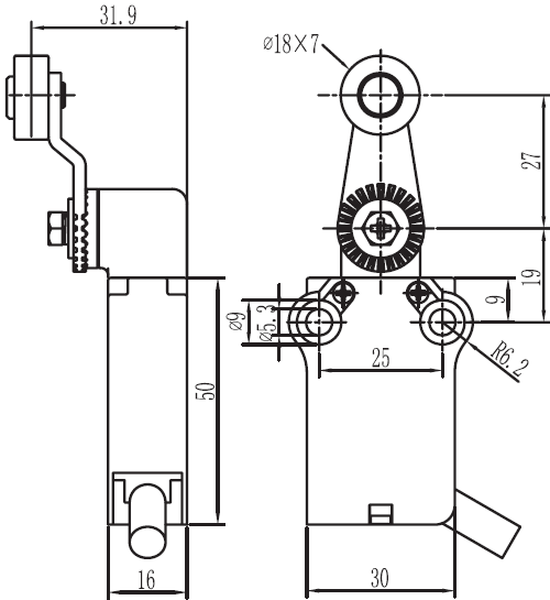 规格: 操作速度: 0.05mm-2m/sec 操作频率: 机械:120ops/min 电气: 30ops/min 绝缘电阻:: >100MΩ @ 500V DC 额定封闭发热电流: 10A (EN60947-5-1) 电气等级: UL/cUL Listed(E216958) for AC15 A300/ DC13 Q300 耐压值: 同级端子间1000VAC 50/60Hz 1分钟 子对地或对无载金属间2500VAC 50/60Hz 1分钟 寿命: 机械 10,000,000次, 电气500,000次 环境温度: -25~80℃(-13~176 oF) 不结冰 电缆: SM32(5芯,0.75平方毫米 7芯,0.5平方毫米 9芯,0.34平方毫米SM32N(4芯,0.5平方毫米) 保护等级: IP67 |