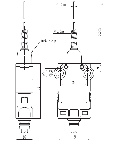规格: 操作速度: 0.05mm-2m/sec 操作频率: 机械:120ops/min 电气: 30ops/min 绝缘电阻:: >100MΩ @ 500V DC 额定封闭发热电流: 10A (EN60947-5-1) 电气等级: UL/cUL Listed(E216958) for AC15 A300/ DC13 Q300 耐压值: 同级端子间1000VAC 50/60Hz 1分钟 子对地或对无载金属间2500VAC 50/60Hz 1分钟 寿命: 机械 10,000,000次, 电气500,000次 环境温度: -25~80℃(-13~176 oF) 不结冰 电缆: SM32(5芯,0.75平方毫米 7芯,0.5平方毫米 9芯,0.34平方毫米SM32N(4芯,0.5平方毫米) 保护等级: IP67 |
