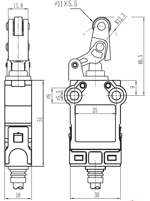 规格: 操作速度: 0.05mm-2m/sec 操作频率: 机械:120ops/min 电气: 30ops/min 绝缘电阻:: >100MΩ @ 500V DC 额定封闭发热电流: 10A (EN60947-5-1) 电气等级: UL/cUL Listed(E216958) for AC15 A300/ DC13 Q300 耐压值: 同级端子间1000VAC 50/60Hz 1分钟 子对地或对无载金属间2500VAC 50/60Hz 1分钟 寿命: 机械 10,000,000次, 电气500,000次 环境温度: -25~80℃(-13~176 oF) 不结冰 电缆: SM32(5芯,0.75平方毫米 7芯,0.5平方毫米 9芯,0.34平方毫米SM32N(4芯,0.5平方毫米) 保护等级: IP67 |
