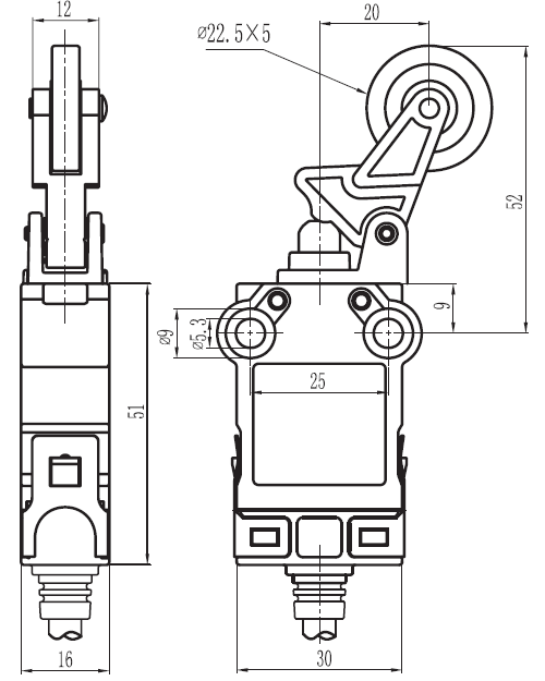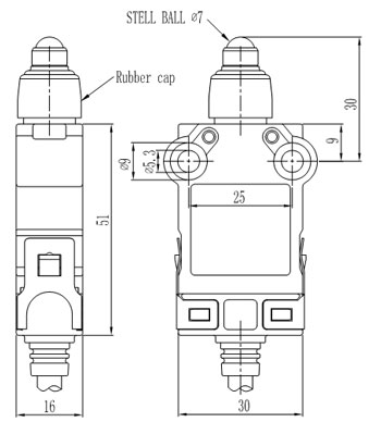规格: 操作速度: 0.05mm-2m/sec 操作频率: 机械:120ops/min 电气: 30ops/min 绝缘电阻:: >100MΩ @ 500V DC 额定封闭发热电流: 10A (EN60947-5-1) 电气等级: UL/cUL Listed(E216958) for AC15 A300/ DC13 Q300 耐压值: 同级端子间1000VAC 50/60Hz 1分钟 子对地或对无载金属间2500VAC 50/60Hz 1分钟 寿命: 机械 10,000,000次, 电气500,000次 环境温度: -25~80℃(-13~176 oF) 不结冰 电缆: SM32(5芯,0.75平方毫米 7芯,0.5平方毫米 9芯,0.34平方毫米SM32N(4芯,0.5平方毫米) 保护等级: IP67 |