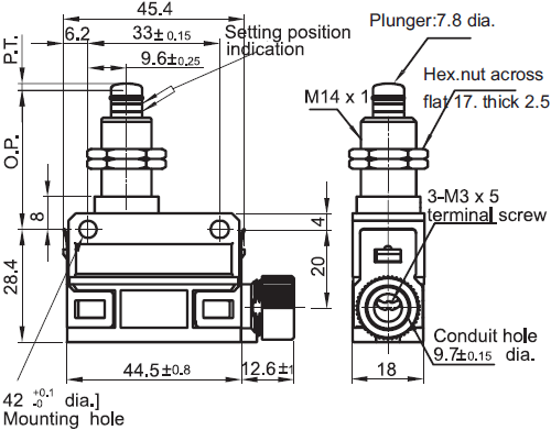 规格: 操作速度: 0.02mm-0.5m/sec 操作频率: 120ops/min 绝缘电阻: >100mΩ@500VDC 接点电阻: <25mΩ 额定电流/电压: 标准负载型(银触点)5A/250VAC or 5A/30VDC 低电流型 (镀金触点) 0.1A/250VAC or 0.1A/30VDC 耐压值: 同级端子间1000VAC 50/60Hz 1分钟 端子对地或对无载金属间2500VAC 50/60Hz 1分钟 寿命: 机械 10,000,000次, 电气500,000次 环境温度: -30~+80°C (-22~+176°F) 湿度: <95%RH 防护等级: IP67 |