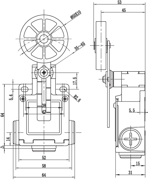规格: 操作速度: 0.05mm-2m/sec 操作频率: 机械:20ops/min 电气: 30ops/min 绝缘电阻: >100MΩ @ 500V DC 接点电阻: <25mΩ 额定封闭发热电流: 10A (EN60947-5-1) 电气等级: UL/cUL Listed(E216958) for AC15 A600/ DC13 Q300 耐压值: 同级端子间1000VAC 50/60Hz 1分钟 端子对地或对无载金属间2500VAC 50/60Hz 1分钟 寿命: 电气 10,000,000次, 机械 500,000次 环境温度: -25 to +80°C (-13 to 176oF) 湿度: <95%RH 防护等级: IP67 |