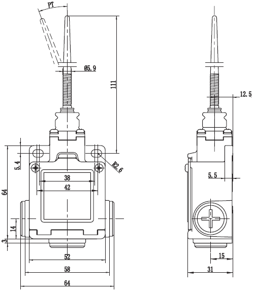 规格: 操作速度: 0.05mm-2m/sec 操作频率: 机械:20ops/min 电气: 30ops/min 绝缘电阻: >100MΩ @ 500V DC 接点电阻: <25mΩ 额定封闭发热电流: 10A (EN60947-5-1) 电气等级: UL/cUL Listed(E216958) for AC15 A600/ DC13 Q300 耐压值: 同级端子间1000VAC 50/60Hz 1分钟 端子对地或对无载金属间2500VAC 50/60Hz 1分钟 寿命: 电气 10,000,000次, 机械 500,000次 环境温度: -25 to +80°C (-13 to 176oF) 湿度: <95%RH 防护等级: IP67 |