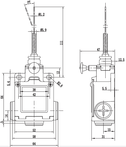 规格: 操作速度: 0.05mm-2m/sec 操作频率: 机械:20ops/min 电气: 30ops/min 绝缘电阻: >100MΩ @ 500V DC 接点电阻: <25mΩ 额定封闭发热电流: 10A (EN60947-5-1) 电气等级: UL/cUL Listed(E216958) for AC15 A600/ DC13 Q300 耐压值: 同级端子间1000VAC 50/60Hz 1分钟 端子对地或对无载金属间2500VAC 50/60Hz 1分钟 寿命: 电气 10,000,000次, 机械 500,000次 环境温度: -25 to +80°C (-13 to 176oF) 湿度: <95%RH 防护等级: IP67 |