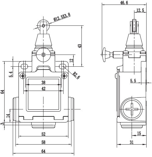 安全限位开关带复位功能SN2112-R(三方向孔出线EN50047标准)