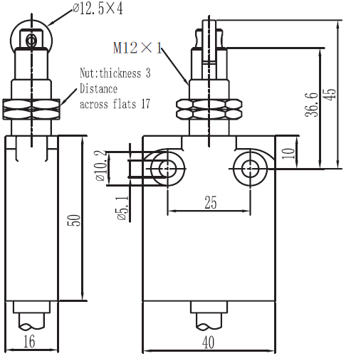 规格: 操作速度: 0.05mm-2m/sec 操作频率: 机械:120ops/min 电气: 30ops/min 绝缘电阻: >100MΩ @ 500V DC 额定封闭发热电流: 10A (EN60947-5-1) 电气等级: UL/cUL Listed(E216958) for AC15 A300/ DC13 Q300 耐压值: 同级端子间1000VAC 50/60Hz 1分钟 子对地或对无载金属间2500VAC 50/60Hz 1分钟 寿命: 机械 10,000,000次, 电气500,000次 环境温度: -25~80℃ without formation of ice 电缆: 5芯 0.75mm2(快接式除外) 直径:7.3mm,材质:PVC 保护等级: IP67 |