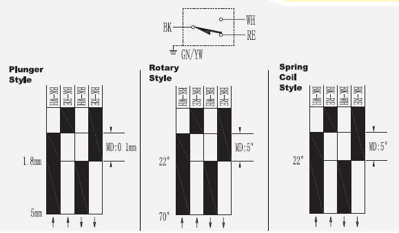 规格: 操作速度: 0.05mm-2m/sec 操作频率: 机械:120ops/min 电气: 30ops/min 绝缘电阻: >100MΩ @ 500V DC 额定封闭发热电流: 10A (EN60947-5-1) 电气等级: UL/cUL Listed(E216958) for AC15 A300/ DC13 Q300 耐压值: 同级端子间1000VAC 50/60Hz 1分钟 子对地或对无载金属间2500VAC 50/60Hz 1分钟 寿命: 机械 10,000,000次, 电气500,000次 环境温度: -25~80℃ without formation of ice 电缆: 4芯 SJT 保护等级: IP67 |