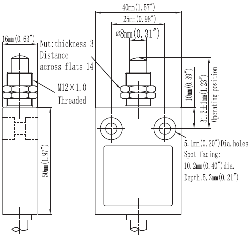 规格: 操作速度: 0.05mm-2m/sec 操作频率: 机械:120ops/min 电气: 30ops/min 绝缘电阻: >100MΩ @ 500V DC 额定封闭发热电流: 10A (EN60947-5-1) 电气等级: UL/cUL Listed(E216958) for AC15 A300/ DC13 Q300 耐压值: 同级端子间1000VAC 50/60Hz 1分钟 子对地或对无载金属间2500VAC 50/60Hz 1分钟 寿命: 机械 10,000,000次, 电气500,000次 环境温度: -25~80℃ without formation of ice 电缆: 4芯 SJT 保护等级: IP67 |