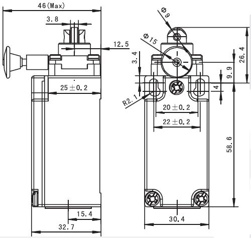 规格: 操作速度: 0.05mm-2m/sec 操作频率: 机械:120ops/min 电气: 30ops/min 绝缘电阻: >100MΩ @ 500V DC 接点电阻: <25mΩ 额定封闭发热电流: 10A (EN60947-5-1) 电气等级: UL/cUL Listed(E216958) for AC15 A600/ DC13 Q300 耐压值: 同级端子间1000VAC 50/60Hz 1分钟 端子对地或对无载金属间2500VAC 50/60Hz 1分钟 寿命: 机械 10,000,000次, 电气500,000次 环境温度: -25 to +80°C (-13 to 176oF) 湿度: <95%RH 防护等级: IP67 |
