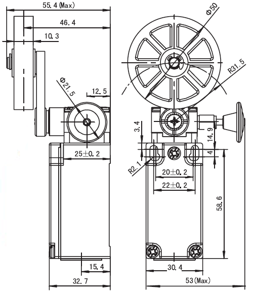 规格: 操作速度: 0.05mm-2m/sec 操作频率: 机械:120ops/min 电气: 30ops/min 绝缘电阻: >100MΩ @ 500V DC 接点电阻: <25mΩ 额定封闭发热电流: 10A (EN60947-5-1) 电气等级: UL/cUL Listed(E216958) for AC15 A600/ DC13 Q300 耐压值: 同级端子间1000VAC 50/60Hz 1分钟 端子对地或对无载金属间2500VAC 50/60Hz 1分钟 寿命: 机械 10,000,000次, 电气500,000次 环境温度: -25 to +80°C (-13 to 176oF) 湿度: <95%RH 防护等级: IP67 |