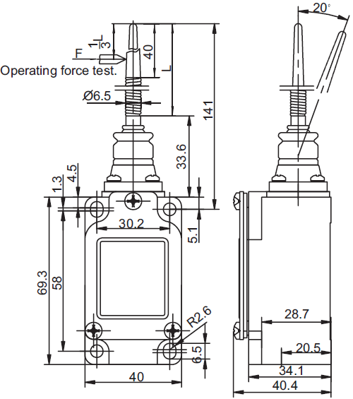 规格: 操作速度: 0.05mm-2m/sec 操作频率: 机械:120ops/min 电气: 30ops/min 绝缘电阻: >100MΩ @ 500V DC 接点电阻: <25mΩ(初值) 额定封闭发热电流: 10A (EN60947-5-1) 电气等级: UL/cUL Listed(E216958) for AC15 A600/ DC13 Q300 耐压值: 同级端子间1000VAC 50/60Hz 1分钟 端子对地或对无载金属间2500VAC 50/60Hz 1分钟 寿命: 机械10,000,000次, 电气 500,000次 环境温度: -25 to +80°C (-13 to 176oF) 湿度: <95%RH 防护等级: IP67 |