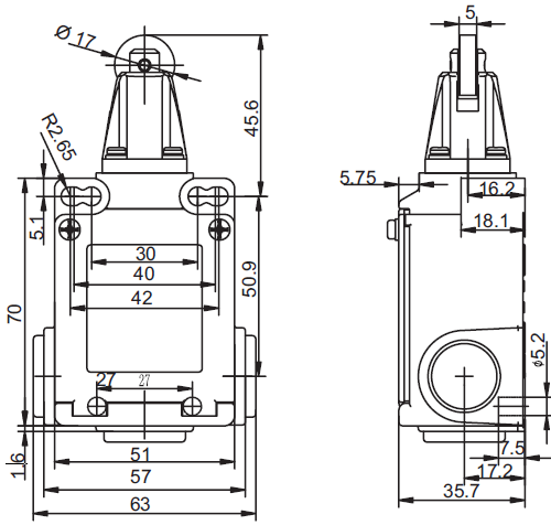 安全限位开关 SN6312三方向孔出线 (金属壳体)
