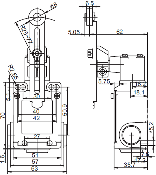 安全限位开关 SN6308 三方向孔出线(金属壳体)