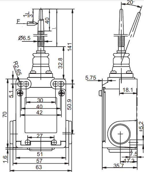 规格: 操作速度: 0.05mm-2m/sec 操作频率: 机械:120ops/min 电气: 30ops/min 绝缘电阻: >100MΩ @ 500V DC 接点电阻: <25mΩ(初值) 额定封闭发热电流: 10A (EN60947-5-1) 电气等级: UL/cUL Listed(E216958) for AC15 A600/ DC13 Q300 耐压值: 同级端子间1000VAC 50/60Hz 1分钟 端子对地或对无载金属间2500VAC 50/60Hz 1分钟 寿命: 机械10,000,000次, 电气 500,000次 环境温度: -25 to +80°C (-13 to 176oF) 湿度: <95%RH 防护等级: IP67 |