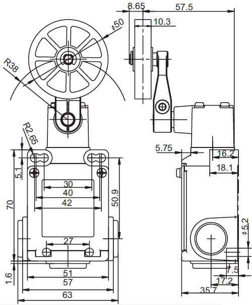 安全限位开关SN6314三方向孔出线 (金属壳体)