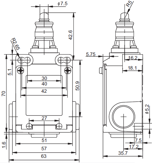 安全限位开关 SN6311-L三方向孔出线 (金属壳体)