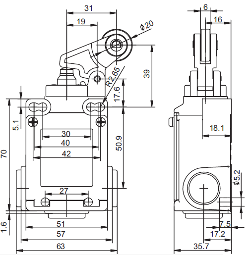 安全限位开关 SN6372 三方向孔出线(金属壳体)