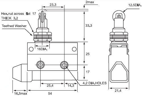 规格: 操作速度: 0.05mm-0.5m/sec 操作频率: 机械:120ops/min 电气: 30ops/min 绝缘电阻: >100MΩ @ 500V DC 接点电阻: <15mΩ(初值) 额定封闭发热电流: 10A/250V AC (EN60947-5-1) 电气等级: UL/cUL Listed(E216958) for AC15 A600/ DC13 Q300 耐压值: 同级端子间1000VAC 50/60Hz 1分钟 端子对地或对无载金属间2000VAC 50/60Hz 1分钟 寿命: 机械10,000,000次, 电气 500,000次 环境温度: -20 to +60°C (-4 to 140oF) 湿度: <95%RH 防护等级: IP64(IP67 加后缀为-W) |