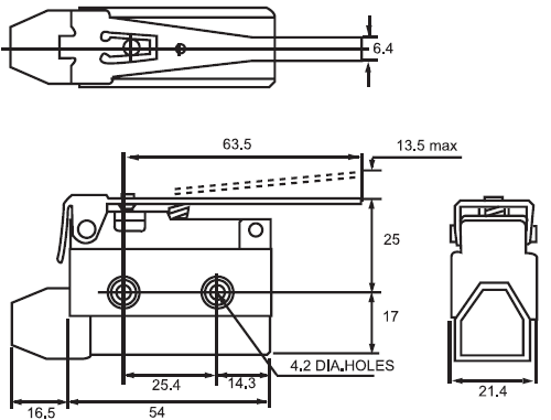 规格: 操作速度: 0.05mm-0.5m/sec 操作频率: 机械:120ops/min 电气: 30ops/min 绝缘电阻: >100MΩ @ 500V DC 接点电阻: <15mΩ(初值) 额定封闭发热电流: 10A/250V AC (EN60947-5-1) 电气等级: UL/cUL Listed(E216958) for AC15 A600/ DC13 Q300 耐压值: 同级端子间1000VAC 50/60Hz 1分钟 端子对地或对无载金属间2000VAC 50/60Hz 1分钟 寿命: 机械10,000,000次, 电气 500,000次 环境温度: -20 to +60°C (-4 to 140oF) 湿度: <95%RH 防护等级: IP64(IP67 加后缀为-W) |