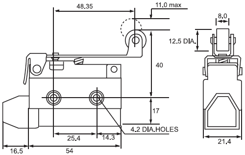 规格: 操作速度: 0.05mm-0.5m/sec 操作频率: 机械:120ops/min 电气: 30ops/min 绝缘电阻: >100MΩ @ 500V DC 接点电阻: <15mΩ(初值) 额定封闭发热电流: 10A/250V AC (EN60947-5-1) 电气等级: UL/cUL Listed(E216958) for AC15 A600/ DC13 Q300 耐压值: 同级端子间1000VAC 50/60Hz 1分钟 端子对地或对无载金属间2000VAC 50/60Hz 1分钟 寿命: 机械10,000,000次, 电气 500,000次 环境温度: -20 to +60°C (-4 to 140oF) 湿度: <95%RH 防护等级: IP64(IP67 加后缀为-W) |