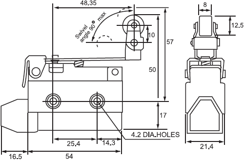规格: 操作速度: 0.05mm-0.5m/sec 操作频率: 机械:120ops/min 电气: 30ops/min 绝缘电阻: >100MΩ @ 500V DC 接点电阻: <15mΩ(初值) 额定封闭发热电流: 10A/250V AC (EN60947-5-1) 电气等级: UL/cUL Listed(E216958) for AC15 A600/ DC13 Q300 耐压值: 同级端子间1000VAC 50/60Hz 1分钟 端子对地或对无载金属间2000VAC 50/60Hz 1分钟 寿命: 机械10,000,000次, 电气 500,000次 环境温度: -20 to +60°C (-4 to 140oF) 湿度: <95%RH 防护等级: IP64(IP67 加后缀为-W) |