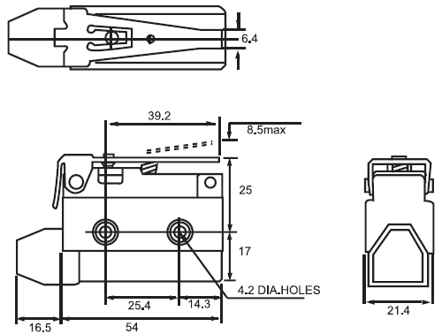 规格: 操作速度: 0.05mm-0.5m/sec 操作频率: 机械:120ops/min 电气: 30ops/min 绝缘电阻: >100MΩ @ 500V DC 接点电阻: <15mΩ(初值) 额定封闭发热电流: 10A/250V AC (EN60947-5-1) 电气等级: UL/cUL Listed(E216958) for AC15 A600/ DC13 Q300 耐压值: 同级端子间1000VAC 50/60Hz 1分钟 端子对地或对无载金属间2000VAC 50/60Hz 1分钟 寿命: 机械10,000,000次, 电气 500,000次 环境温度: -20 to +60°C (-4 to 140oF) 湿度: <95%RH 防护等级: IP64(IP67 加后缀为-W) |