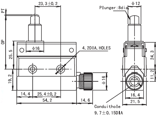 规格: 操作速度: 0.05mm-0.5m/sec 操作频率: 机械:120ops/min 电气: 30ops/min 绝缘电阻: >100MΩ @ 500V DC 接点电阻: <15mΩ(初值) 额定封闭发热电流: 10A/250V AC (EN60947-5-1) 电气等级: UL/cUL Listed(E216958) for AC15 A600/ DC13 Q300 耐压值: 同级端子间1000VAC 50/60Hz 1分钟 端子对地或对无载金属间2000VAC 50/60Hz 1分钟 寿命: 机械10,000,000次, 电气 500,000次 环境温度: -20 to +60°C (-4 to 140oF) 湿度: <95%RH 防护等级: IP64(IP67 加后缀为-W) |