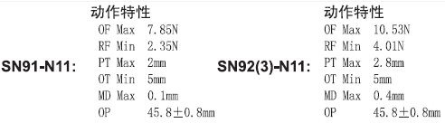 规格: 操作速度: 0.02mm-0.5m/sec 操作频率: 机械:120ops/min 电气: 30ops/min 绝缘电阻: >100MΩ @ 500V DC 接点电阻: <25mΩ(初值) 额定电流电压(UL编号:E240199): SN91:15A,125/250/480VAC:0.75HP/125VAC or 1.5HP/250VAC SN92:20A,125/250/480VAC:1.5HP/125VAC or 2HP/250VAC SN93:25A,125/250/480VAC:1.5HP/125VAC or 2HP/250VAC 电气等级: UL/cUL Listed(E216958) for AC15 A600/ DC13 Q300 耐压值: 同级端子间1000VAC 50/60Hz 1分钟 端子对地或对无载金属间2500VAC 50/60Hz 1分钟 寿命: 机械10,000,000次, 电气 500,000次 环境温度: -25 ~ +80°C (-13 to 176oF) 湿度: <95%RH 防护等级: IP66/IP60 |