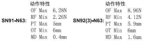 规格: 操作速度: 0.02mm-0.5m/sec 操作频率: 机械:120ops/min 电气: 30ops/min 绝缘电阻: >100MΩ @ 500V DC 接点电阻: <25mΩ(初值) 额定电流电压(UL编号:E240199): SN91:15A,125/250/480VAC:0.75HP/125VAC or 1.5HP/250VAC SN92:20A,125/250/480VAC:1.5HP/125VAC or 2HP/250VAC SN93:25A,125/250/480VAC:1.5HP/125VAC or 2HP/250VAC 电气等级: UL/cUL Listed(E216958) for AC15 A600/ DC13 Q300 耐压值: 同级端子间1000VAC 50/60Hz 1分钟 端子对地或对无载金属间2500VAC 50/60Hz 1分钟 寿命: 机械10,000,000次, 电气 500,000次 环境温度: -25 ~ +80°C (-13 to 176oF) 湿度: <95%RH 防护等级: IP66/IP60 |