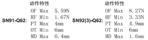 规格: 操作速度: 0.02mm-0.5m/sec 操作频率: 机械:120ops/min 电气: 30ops/min 绝缘电阻: >100MΩ @ 500V DC 接点电阻: <25mΩ(初值) 额定电流电压(UL编号:E240199): SN91:15A,125/250/480VAC:0.75HP/125VAC or 1.5HP/250VAC SN92:20A,125/250/480VAC:1.5HP/125VAC or 2HP/250VAC SN93:25A,125/250/480VAC:1.5HP/125VAC or 2HP/250VAC 电气等级: UL/cUL Listed(E216958) for AC15 A600/ DC13 Q300 耐压值: 同级端子间1000VAC 50/60Hz 1分钟 端子对地或对无载金属间2500VAC 50/60Hz 1分钟 寿命: 机械10,000,000次, 电气 500,000次 环境温度: -25 ~ +80°C (-13 to 176oF) 湿度: <95%RH 防护等级: IP66/IP60 |