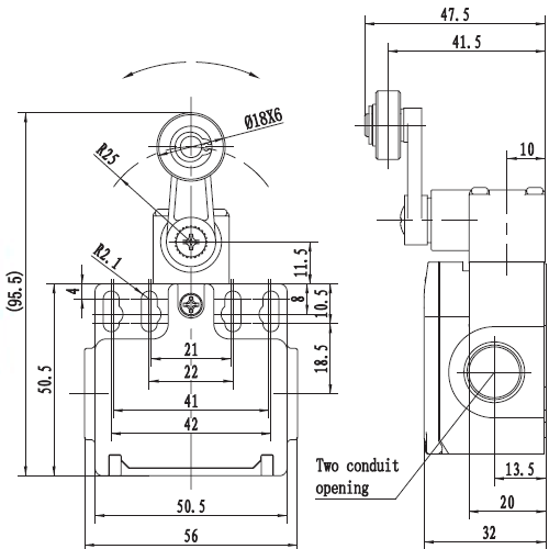 安全限位开关 SND2104(二方向孔出线EN50047标准)
