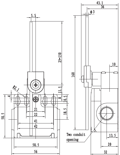 安全限位开关 SND2107(二方向孔出线EN50047标准)