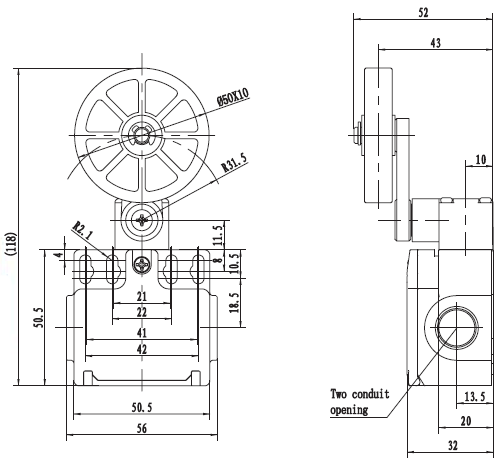 安全限位开关 SND2114(二方向孔出线EN50047标准)