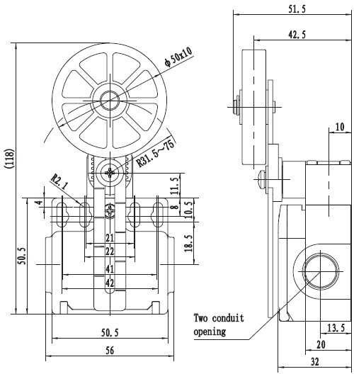 安全限位开关 SND2118(二方向孔出线EN50047标准)