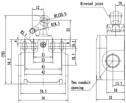 安全限位开关 SND2162(二方向孔出线EN50047标准)