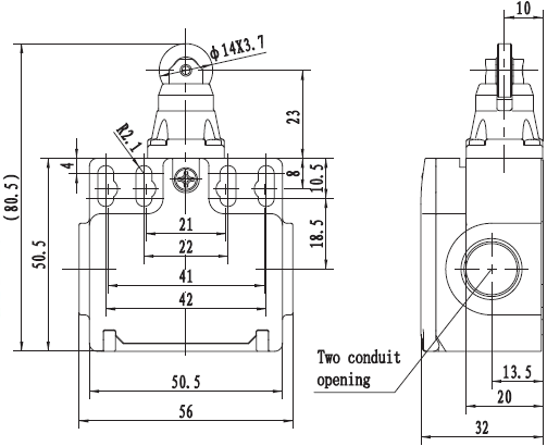 安全限位开关 SND2112-L(二方向孔出线EN50047标准)