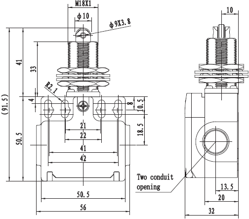 安全限位开关SND2132(二方向孔出线EN50047标准)