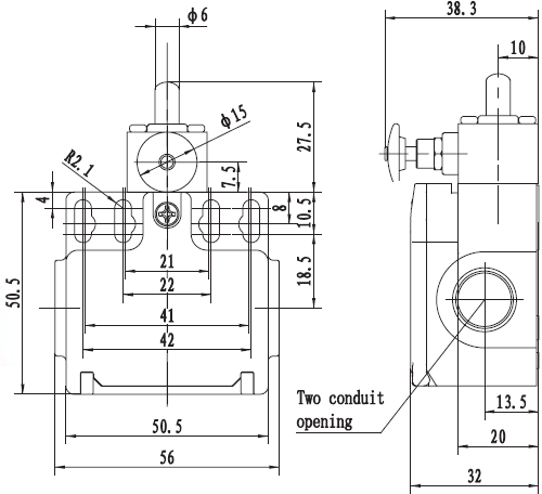 安全限位开关带复位功能SND2111-R(二方向孔出线EN50047标准)