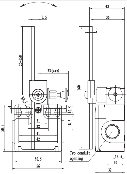 安全限位开关带复位功能 SND2107-SR(二方向孔出线EN50047标准)
