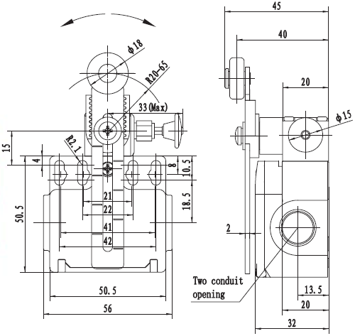 安全限位开关带复位功能SND2108-SR(二方向孔出线EN50047标准)