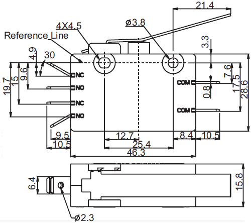 规格: 电气参数 电气等级:15A,125/250VAC;3/4HP,125VAC 1-1/2HP,250VAC 环境温度:105℃(可选150℃或200℃) 可燃性等级:UL94-V0 材料 外壳:通用酚醛 动作按钮:热塑性尼龙 公共端子:黄铜 常开常闭端子:黄铜 动叶片:黄铜 弹簧:不锈钢 动作辅助配件:冷轧钢板(镀镍) 滚轮:不锈钢 触点:银氧化镉 |