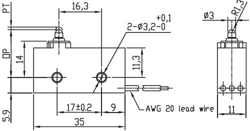 特点: 防水型微动开关 |