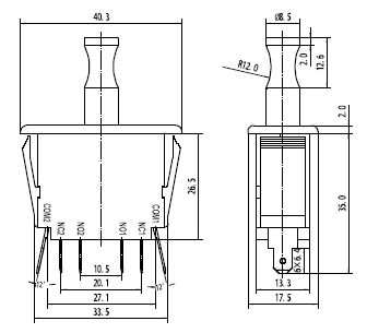 规格: 操作速度: 10mm-1m/sec 操作频率: 机械:120 ops/min,电气:30 ops/min 绝缘电阻: >100MΩ @ 500V DC 接点电阻: <15mΩ (初值) 额定电流/电压: 12A 标准: 12A 1/2HP 125VAC, 10A 1/2HP 250VAC 16A DPDT: 16A 3/4HP 125VAC, 12A 1HP 250VAC 16A SPDT: 16A 1HP 125VAC, 12A 1HP 250VAC 耐压值: 同级端子间1000VAC 50/60Hz 1分钟 端子对地或无载金属间2500VAC 50/60Hz 1分钟 寿命: 机械:1,000,000ops;电气1,00,000ops 环境温度e: -25~+80℃(-35~180℉)不结冰 湿度: <85%RH 保护等级: IP40 |
