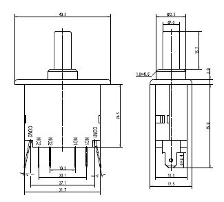 规格: 操作速度: 10mm-1m/sec 操作频率: 机械:120 ops/min,电气:30 ops/min 绝缘电阻: >100MΩ @ 500V DC 接点电阻: <15mΩ (初值) 额定电流/电压: 12A 标准: 12A 1/2HP 125VAC, 10A 1/2HP 250VAC 16A DPDT: 16A 3/4HP 125VAC, 12A 1HP 250VAC 16A SPDT: 16A 1HP 125VAC, 12A 1HP 250VAC 耐压值: 同级端子间1000VAC 50/60Hz 1分钟 端子对地或无载金属间2500VAC 50/60Hz 1分钟 寿命: 机械:1,000,000ops;电气1,00,000ops 环境温度e: -25~+80℃(-35~180℉)不结冰 湿度: <85%RH 保护等级: IP40 |